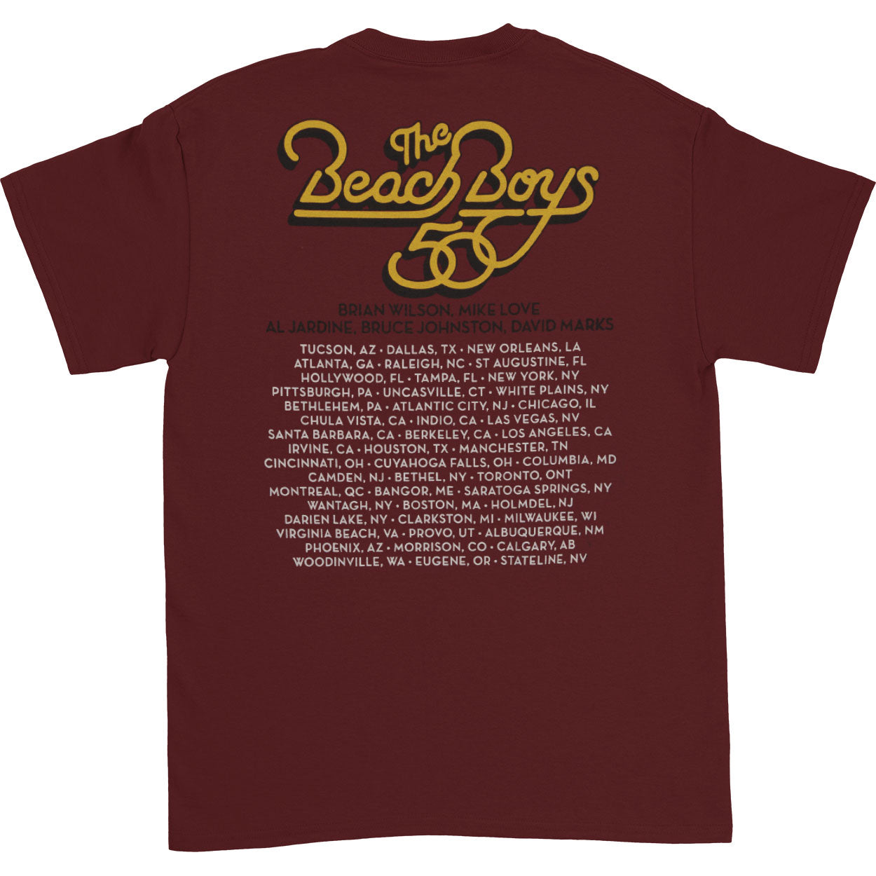 Band Member Silhouettes Holding Surfboard Above 50 Logo/50th Anniversary Tour Info