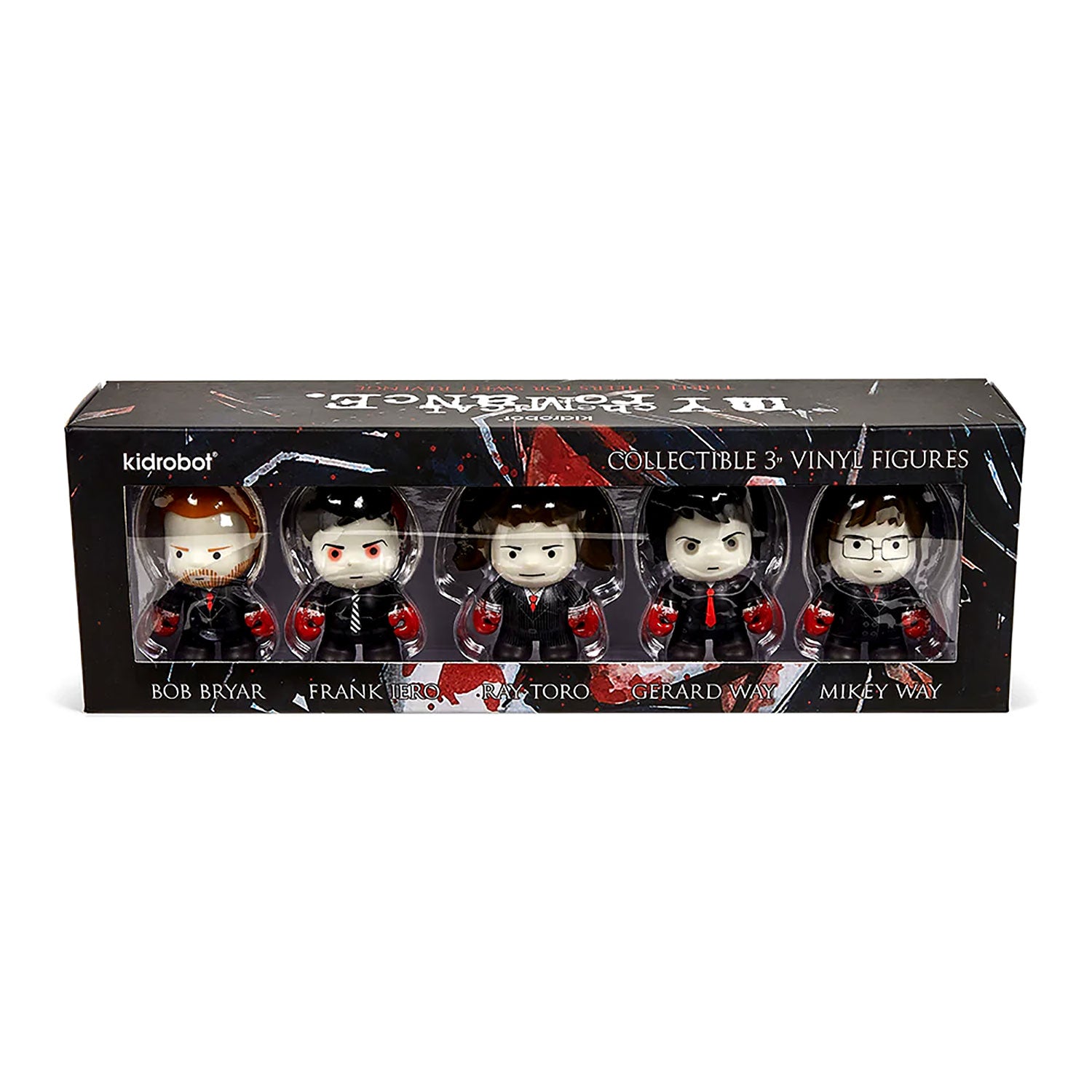 Alternative rock, pop punk, emo. Whatever you want to call it, My Chemical Romance changed the mainstream music landscape with their powerful anthems and theatrical style. Join the Black Parade with Kidrobot's limited edition 3'' vinyl mini figure sets celebrating the band's era-defining albums and iconic music videos.