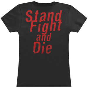 King Leonidas Holding Up Shield & Sword While Yelling Blue Tone Blood Splattered Photo Above Blood Splattered Shield Logo/Stand Fight And Die