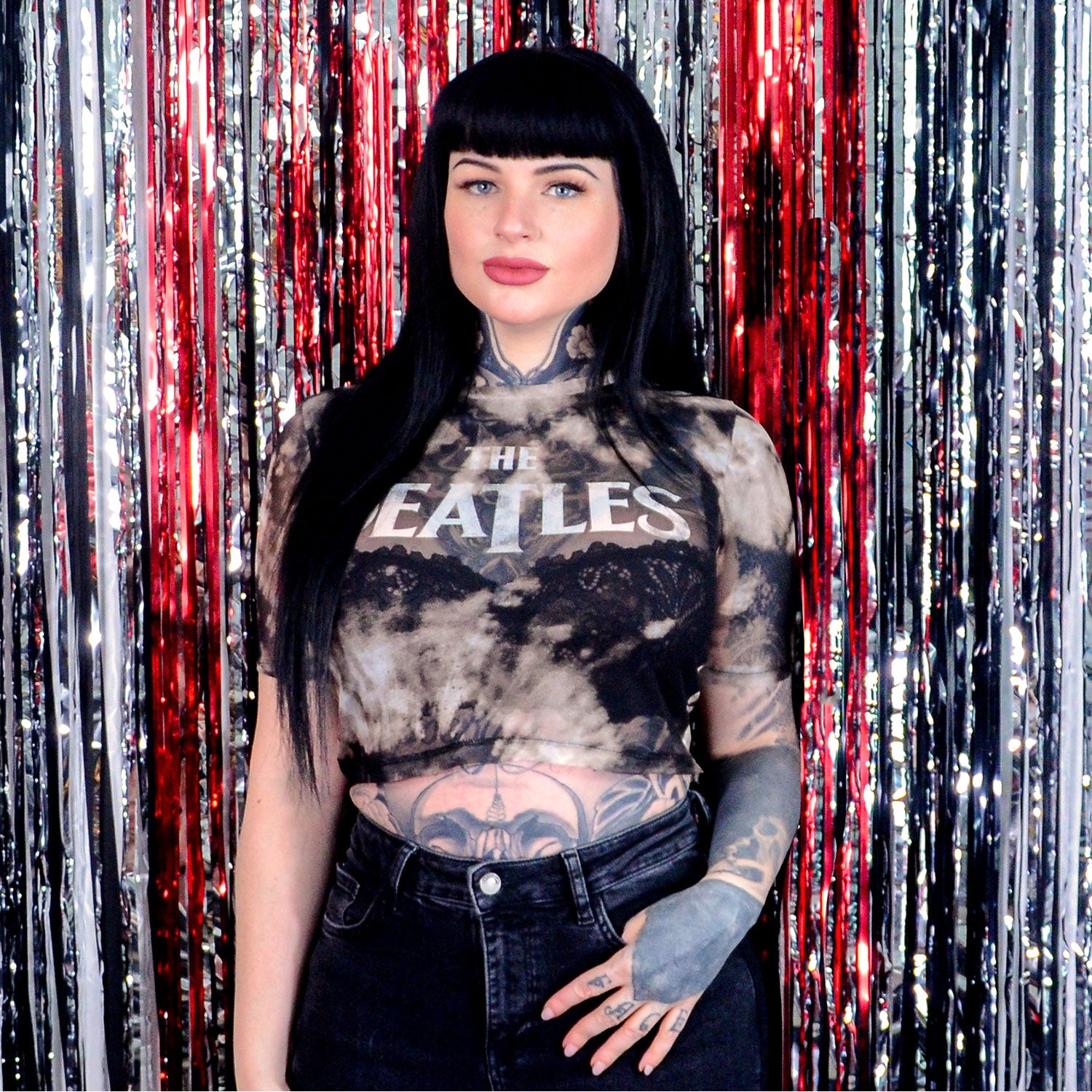 Refined and stylish, this exquisite mesh fitted crop top embodies the essence of high fashion. Crafted with meticulous attention to detail, it boasts a mesmerizing all-over sublimation print that extends throughout.