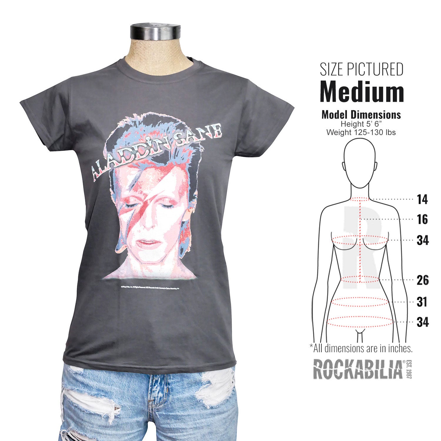 Jumbo Solarized Aladdin Sane On Charcoal Grey Tee (Import)