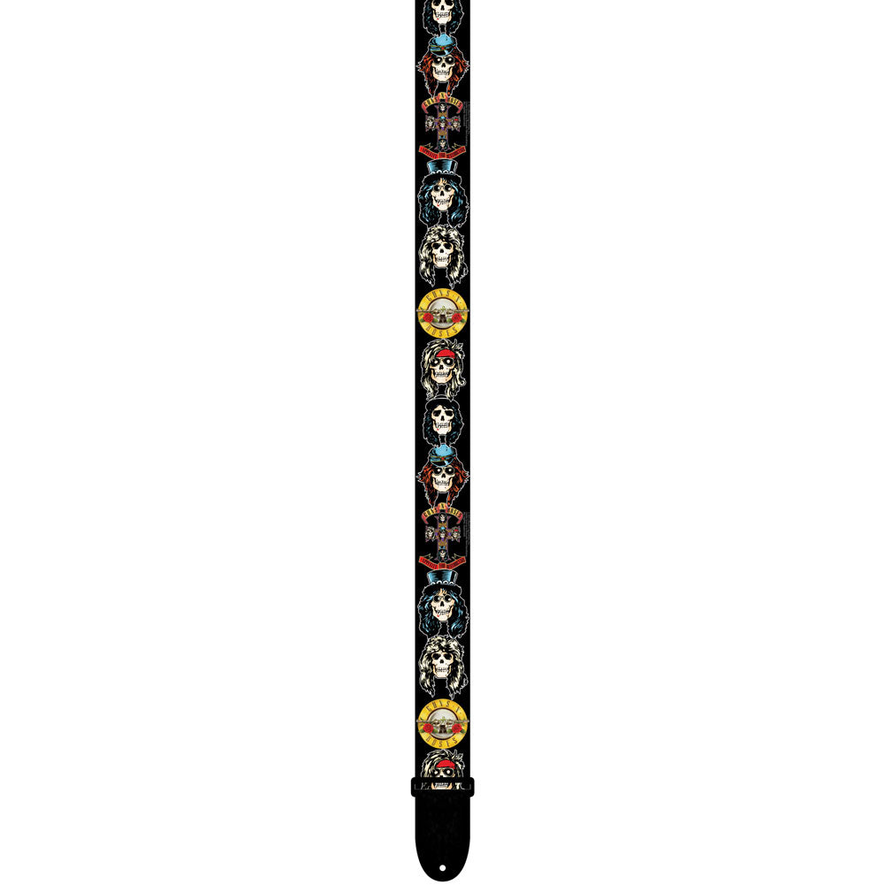 Appetitie For Destruction Skulls With Roses & Pistols Bullet Logos 2 Inches Polyester Guitar Strap (Adjustable Length 39 Inches To 58 Inches)