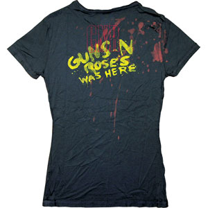 Allover Print Bleached Blood Splatters With Sewn On Roses & Pistols Bullet Logo Applique With Red Embroidered Outline & Small Yellow Embroidered GNR Outline Logo/Guns N Roses Was Here With Allover Bleached Blood Splattered & Red Embroidered Outline GNR Logo
