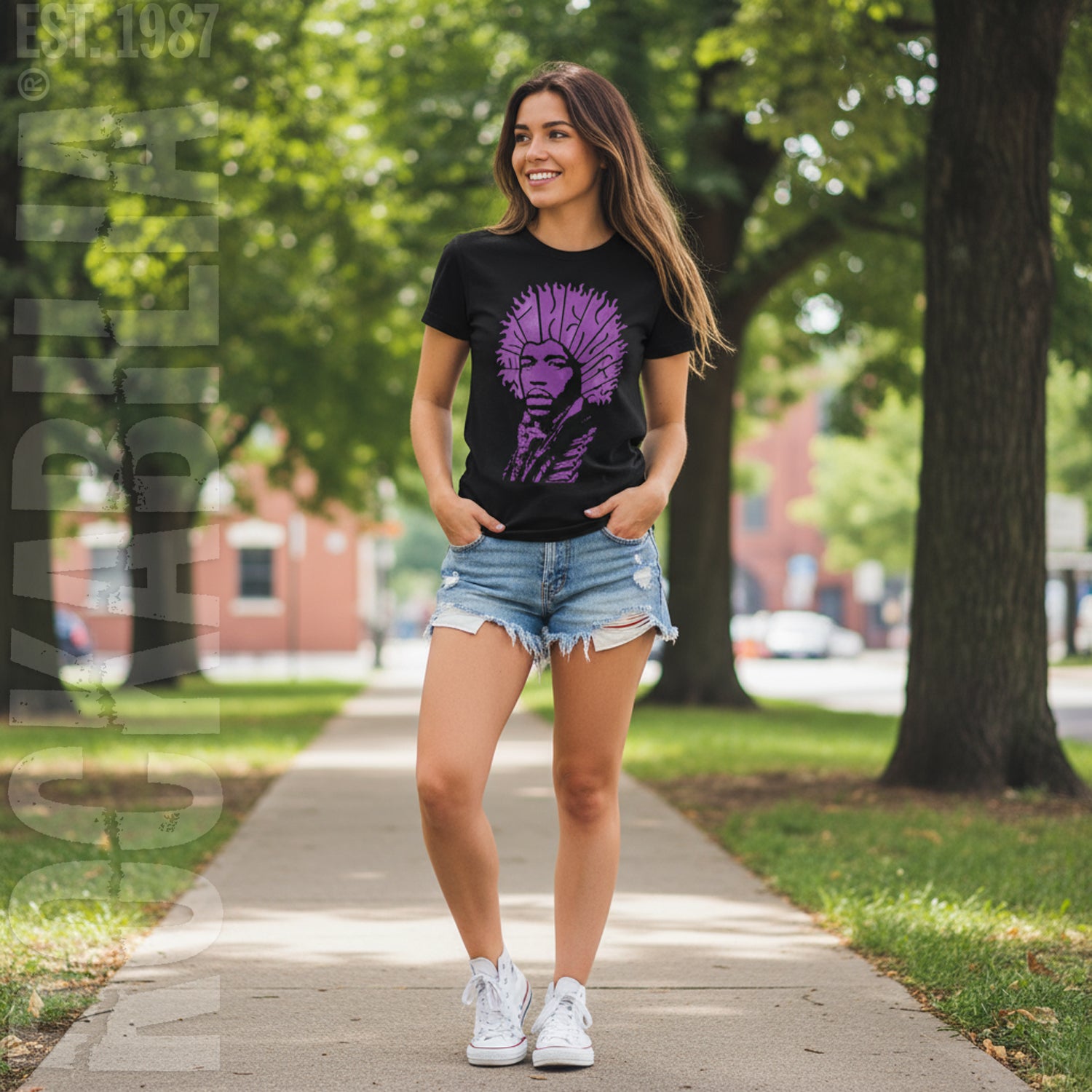 Purple Logo Forming Hair On Chest Up Jimi Hendrix Portrait