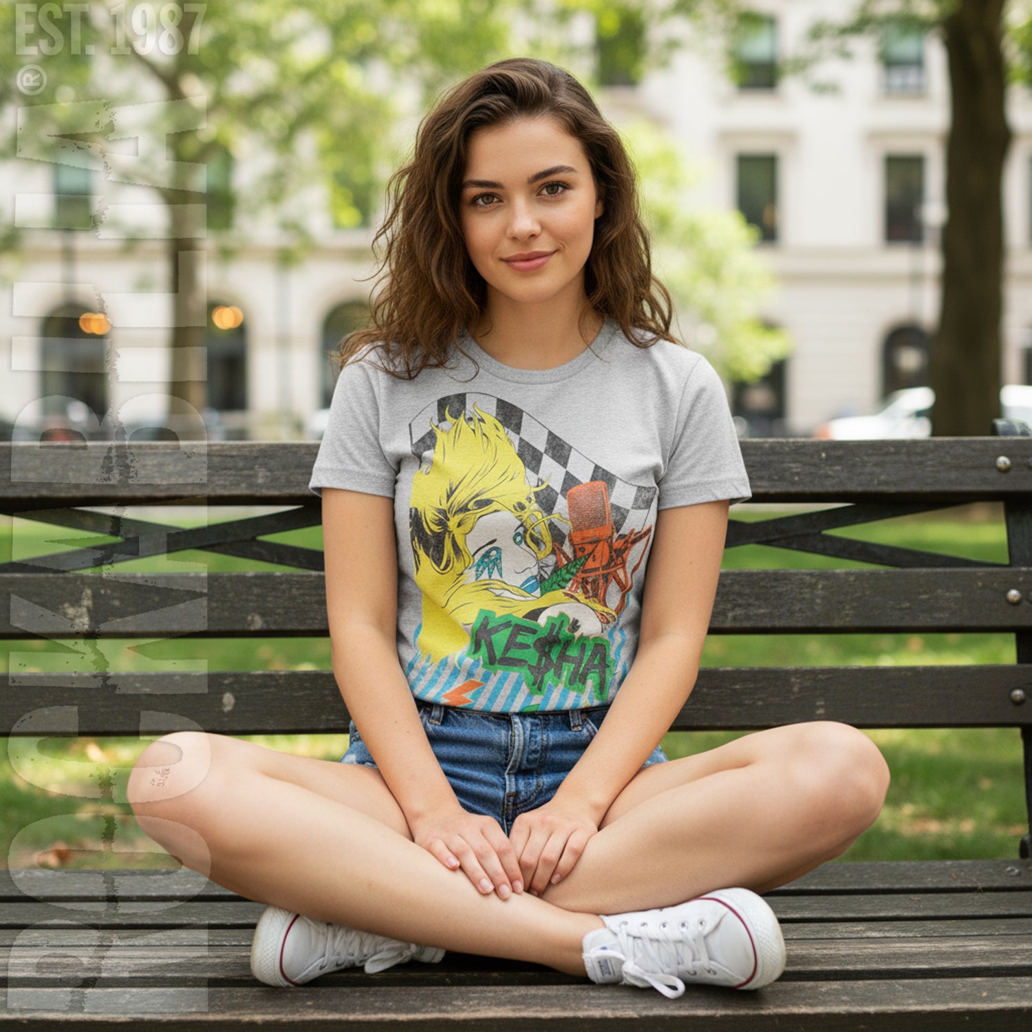 Kesha Head & Logo With Stripes, Lightning Bolts & Checkered Flag Background