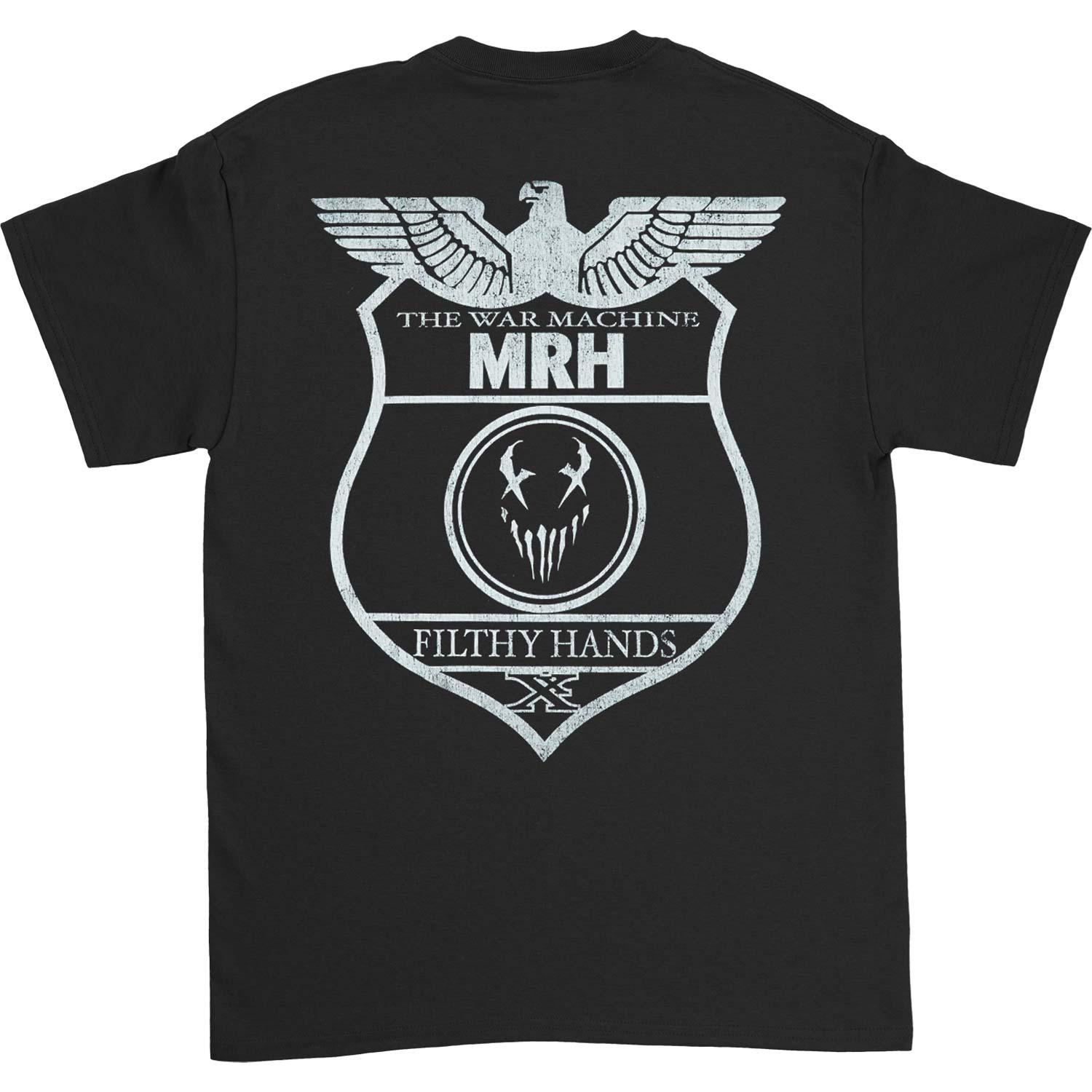 The War Machine MRH Filthy Hands X Eagle & X-Face Badge Pocket Logo/The War Machine MRH Filthy Hands X Eagle & X-Face Badge Logo On Black T-Shirt