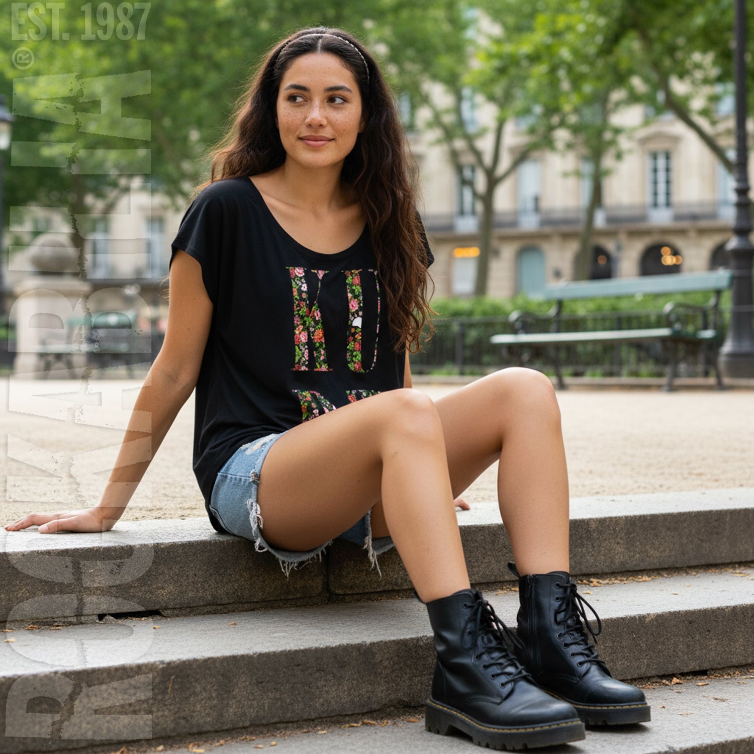 Girls Jr. Dolman/Floral Filled Kurt Stacked Logo