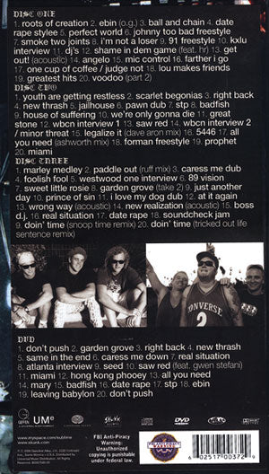This 3CD/DVD set includes 20 video tracks and 60 audio tracks including rare, live, demo, and outtake footage. Included are demos from 1988-1996 including an original demo, live audio performances, acoustic tracks, 4 cuts from the legendary 2 night run at L.A.'s House Of Blues featuring Gwen Stefani from the KROQ Weenie Roast in 1995, unseen videos, and more.