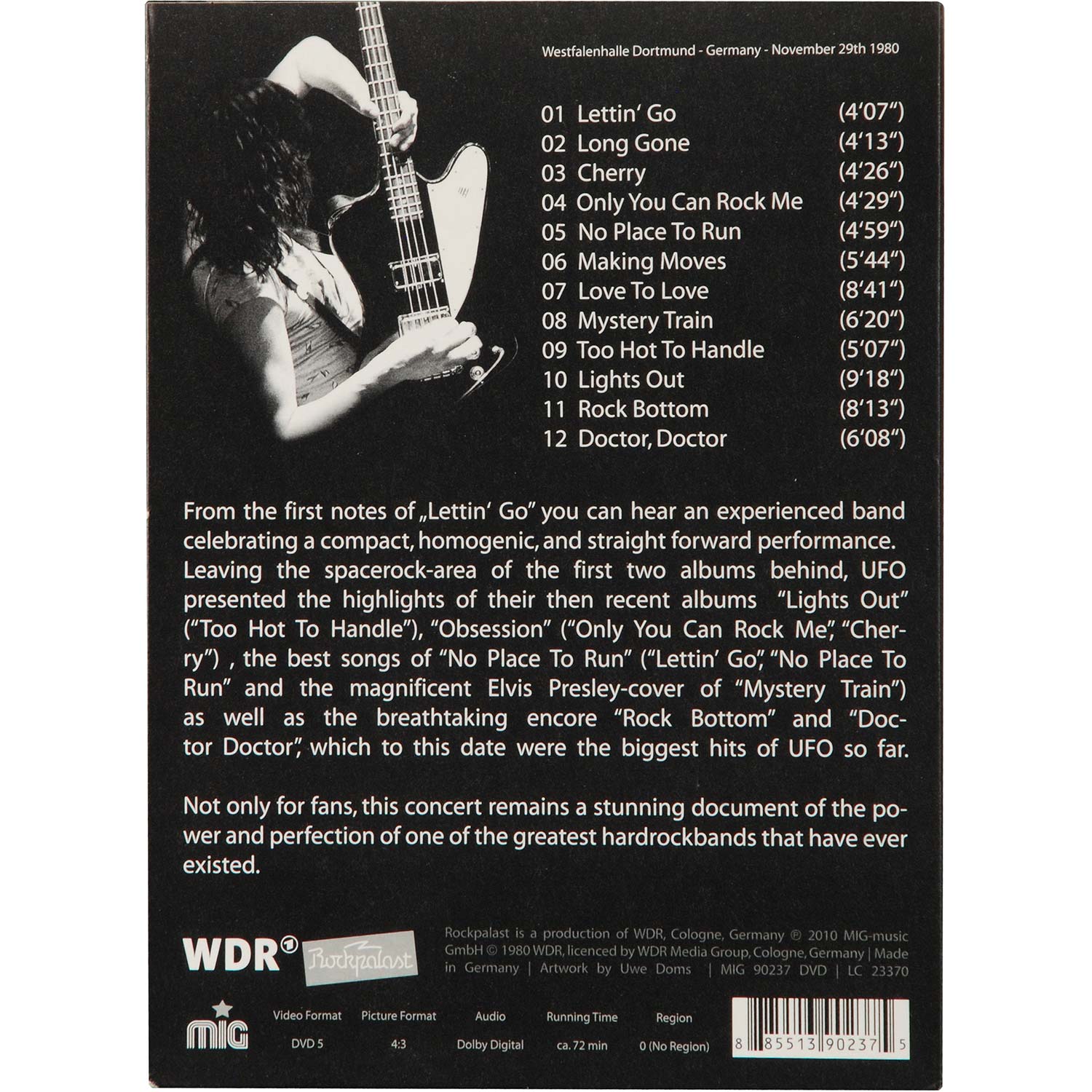 Forming in 1969 UFO is one of the world's leading hard rock bands. Having started as a Boogie-influenced group, they soon turned to psychedelic influenced sounds second album. A major stylistic change came in 1973, when Michael Schenker joined and UFO then defined their particular hard rock style. This CD features a 1980 concert in full. Not only for fans, this concert remains a stunning document of the power and perfection of one of the greatest Hard rock bands that have ever existed. CD companion to the DVD.